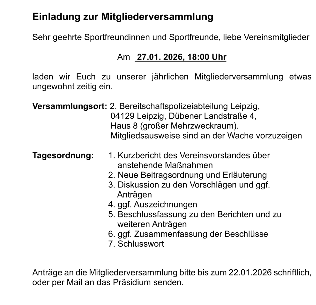 Mitgliederversammlung 2026 des Polizeisportverein Leipzig e.V.