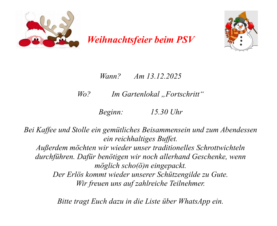 Weihnachtsfeier 2025 der Schützengilde im PSV Leipzig e.V.